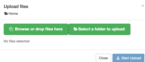 Using the “Upload files” window, browse or drag-and-drop the files you want to upload. Select “Start Upload” to initiate the upload process: